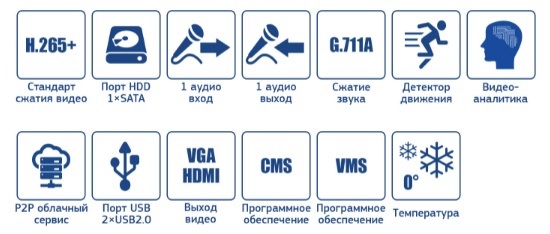 Данная модель осуществляет запись и отображение HD камер до 5 Мп в режиме 5Мп-N, запись 1 канал аудио. В режиме DVR поддерживается изменение типа канала с аналогового HD на цифровой IP при сохранении общего количества каналов.