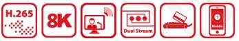 | Производительность декодирования | 2 канала @ 32 Мп (30 к/с) / 2 канала @ 24 Мп (30 к/с) / 4 канала @ 12 Мп (20 к/с) / 8 каналов @ 8 Мп (25 к/с) / 16 каналов @ 4 Мп (30 к/с) |