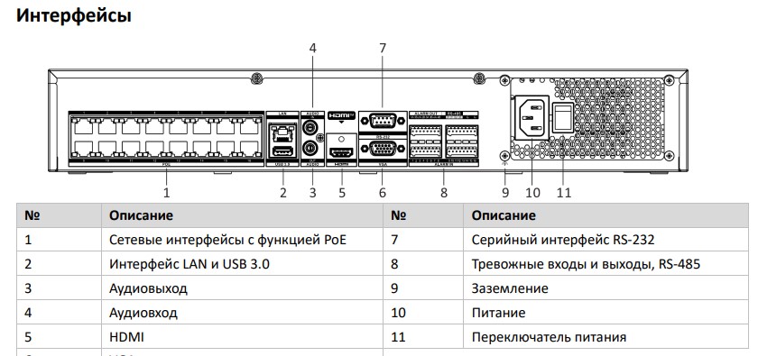 Производительность декодирования ИИ вкл.: 1 канал @ 12 Мп (30 к/с) / 2 канала @ 8 Мп (30 к/с) / 4 канала @ 4 Мп (30 к/с) / 8 каналов @ 1080p (30 к/с)