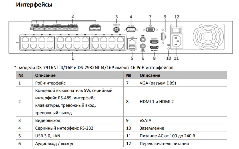 - Декодирующая способность до 2 каналов 12 Мп/16 каналов 1080p