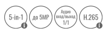 Максимальное разрешение подключаемых аналоговых камер до 5 Mp
